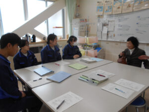 橋本さんのお話からは、野菜やお米、そして動物たちが育つには多くの手間や工夫があり、すべての命がつながり合っていることを学びました。「食事は生命のぬくもりをいただいていること」「生きていくために大切なのは“ほう・れん・そう”であること」など、心に残る言葉をいただき、生徒たちは生きることや人との関わりについて思いを深めながら、真剣に耳を傾けていました。
