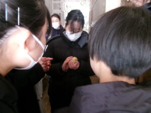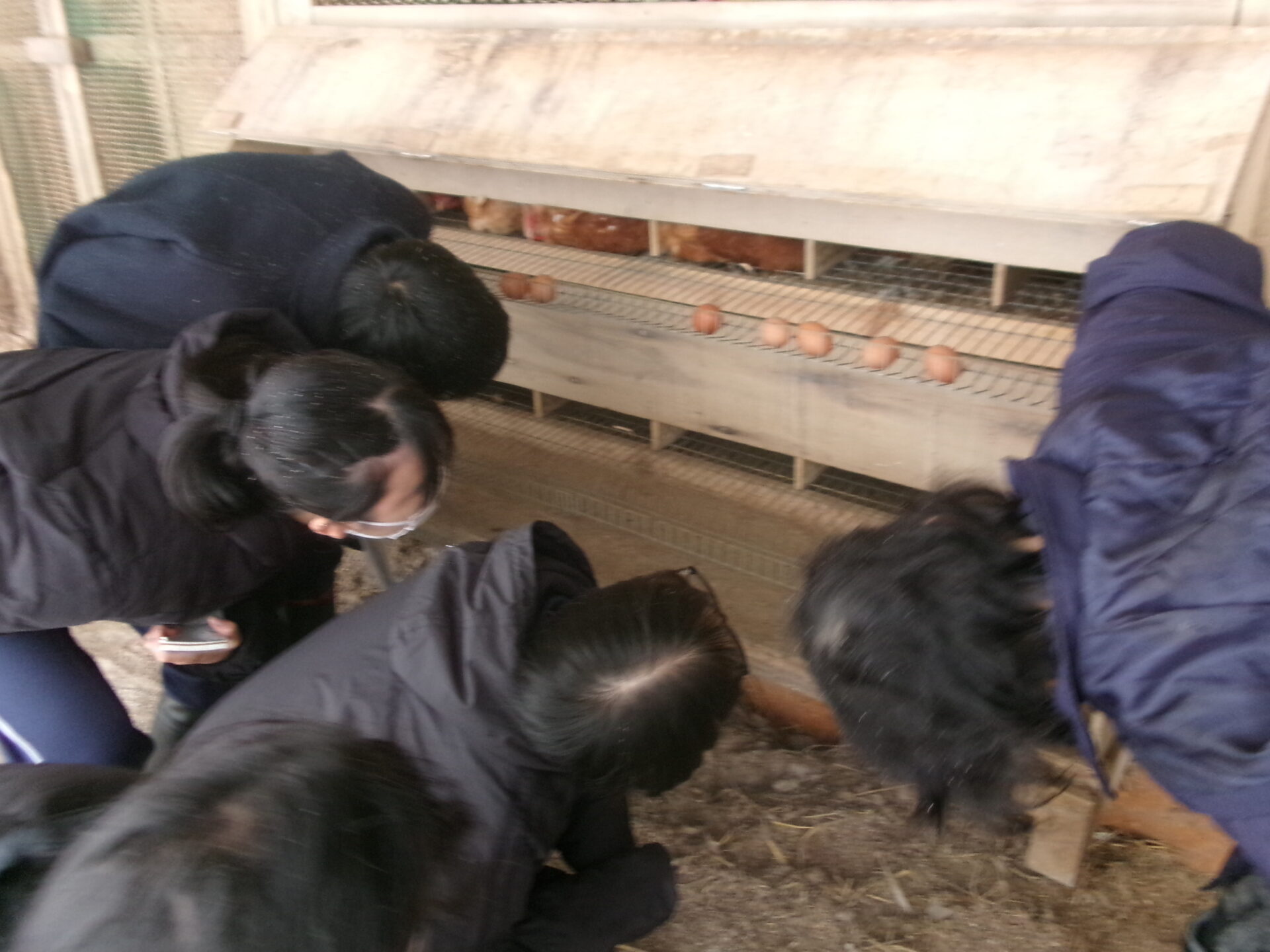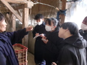 生みたての卵やひよこに触れさせていただき、命の温もりを実感できる貴重な体験となりました。生徒たちは、小さな鼓動と温かさに驚きつつも、そっと優しく撫でていました。
