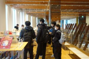 午前中は、富山駅から市内電車を使いTOYAMAキラリに行きました。「富山市ガラス美術館」でガラスアートを鑑賞したり、「富山市立図書館 本館」で図書館の利用方法について学んだりしました。