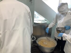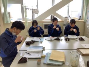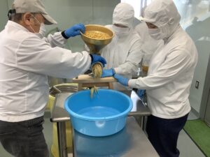 今年度も、新村こうじみそ商店より講師をお招きし、食品加工班で味噌造りを行いました。実技指導に加え、発酵食品についての講話もしていただき、食への理解を深める貴重な機会となりました。
