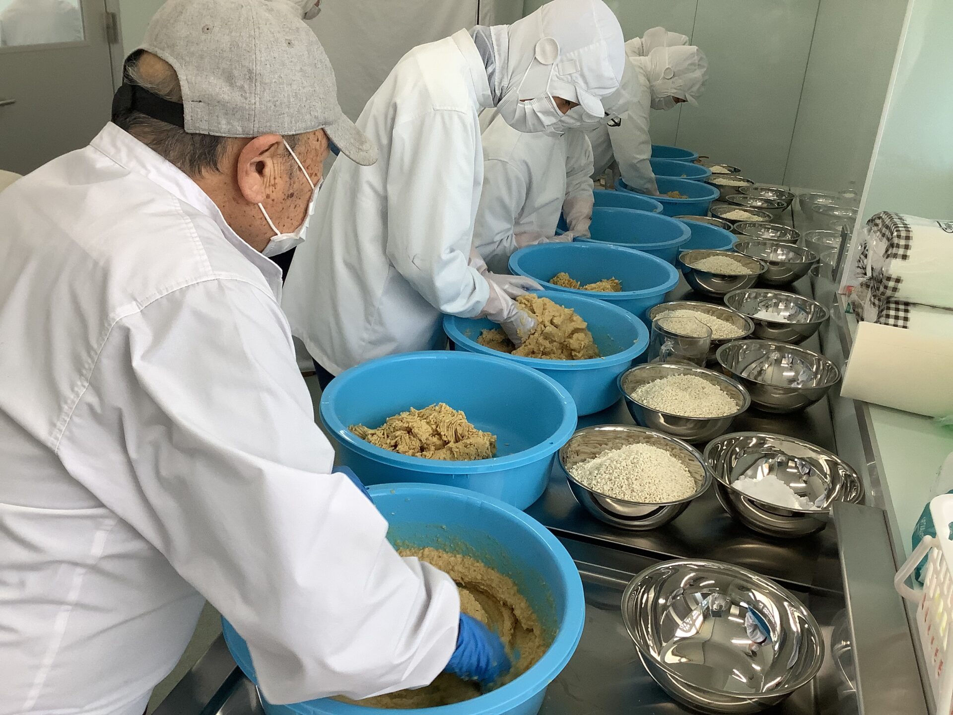 講話では、味噌を2~3月の寒い時期に仕込む「寒仕込み」の意味について教えていただきました。寒い時期は雑菌が繁殖しにくく、きれいな水で仕込むことで安定した発酵につながるそうです。また、塩には殺菌作用があり、味噌造りに欠かせない役割があることも学びました。