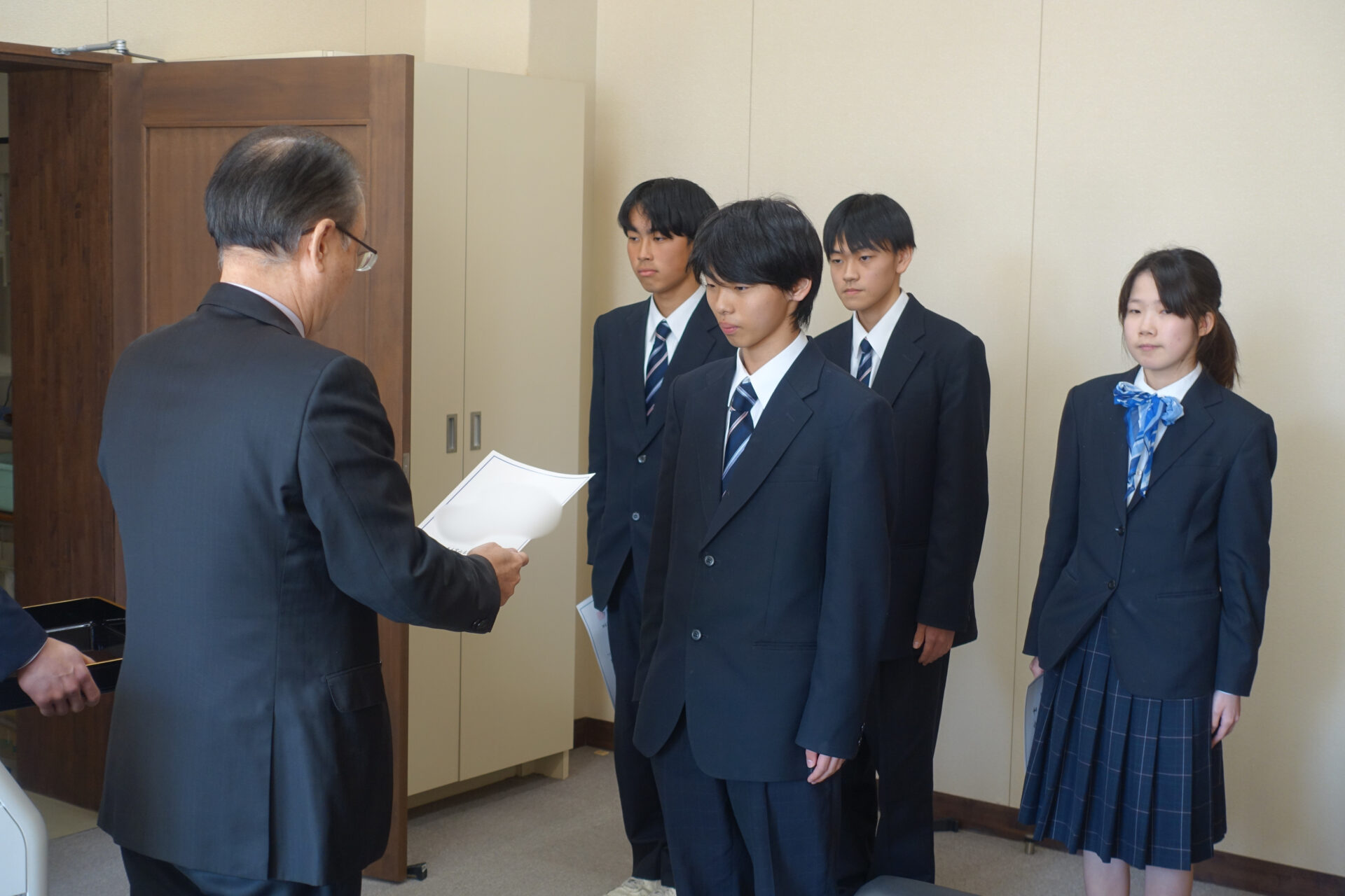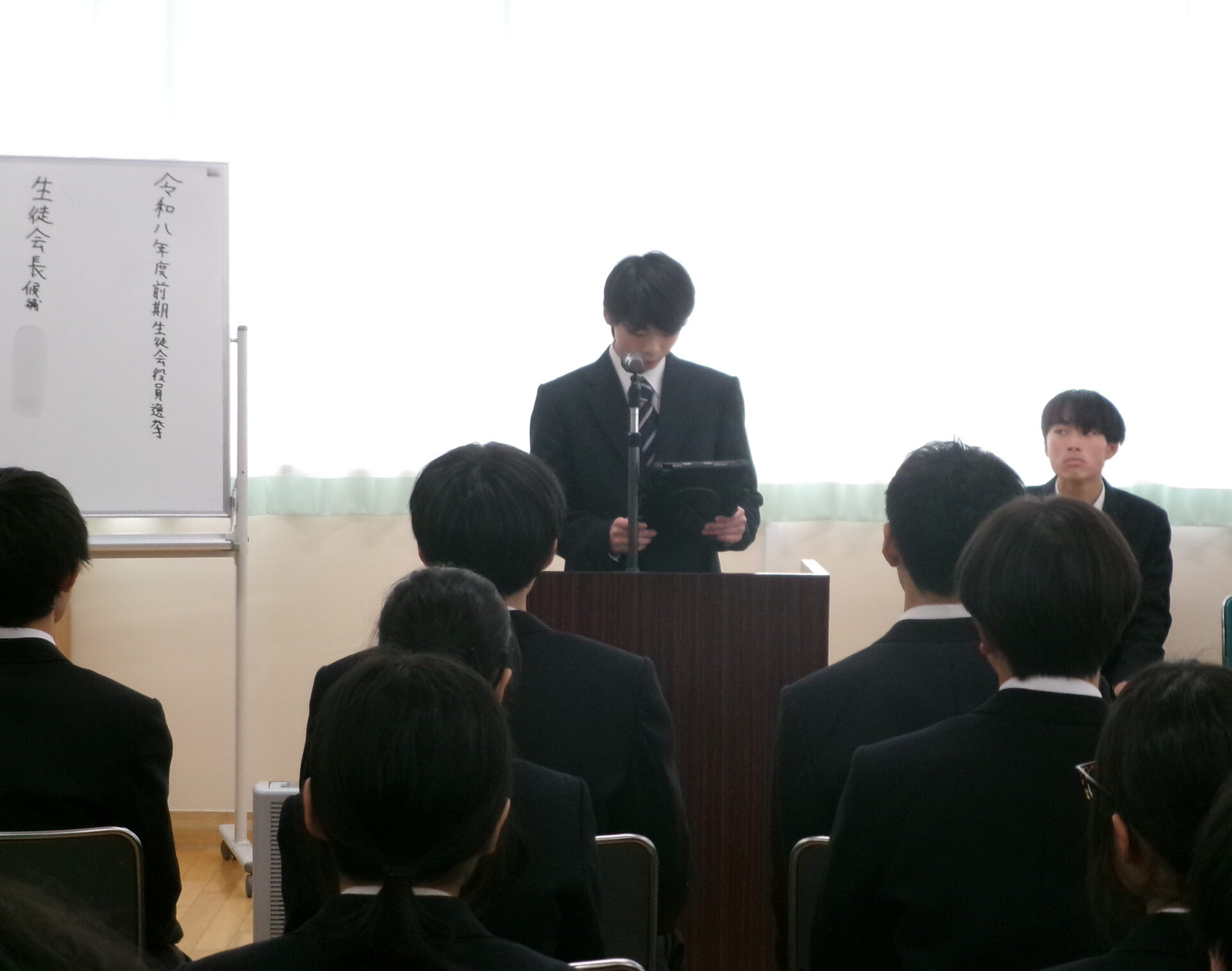 令和8年度 前期生徒会役員選挙と任命式令和7年度2026年3月13日3月13日(金)に令和8年度前期生徒会役員選挙を行いました。 役員に5名が立候補し、選挙管理委員の進行で、会長、副会長、書記、会計の順に立候補者が演説しました。 その後、富山市選挙管理委員会から借用した、本物の投票箱で投票を行いました。 3月16日(月)には、新役員任命式が行われ、校長先生から一人一人に任命書が授与されました。 新しい役員を中心に、活発な前期生徒会活動を期待しています。