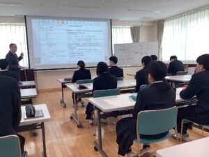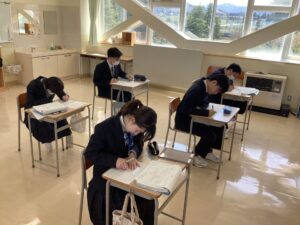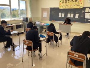 進路学習では、卒業までのスケジュールを確認し、履歴書の下書きを行いました。
