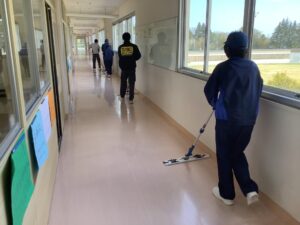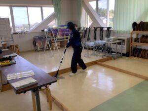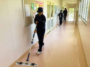 プロフェッショナル講座(環境基礎班)令和8年度 , …2026年4月21日4月21日(火)に、環境基礎班の1年生を対象としたプロフェッショナル講座を行いました。 講座では、富山総合ビルセンター株式会社に就職した本校の卒業生を講師として招き、清掃業についての講話と清掃道具の実技指導を行っていただきました。 生徒たちは、まだ慣れない清掃道具の扱いを、講師に助言を求めながら改善していました。 約10回の環境基礎班での学習で、清掃技術の基礎を学んでほしいと思います。