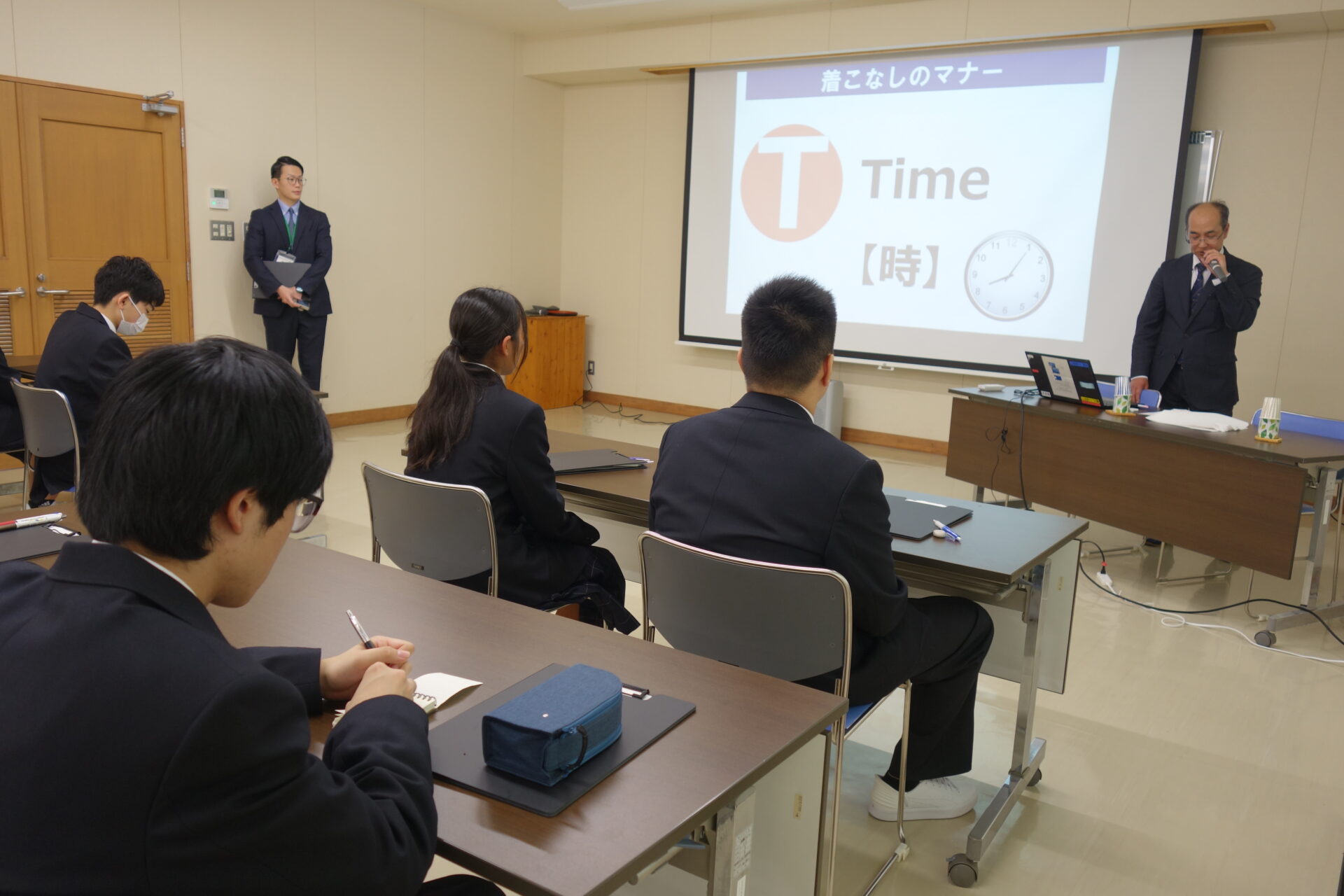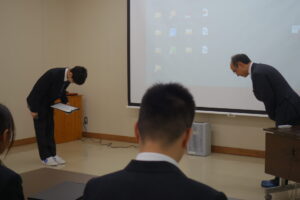 着こなし教室令和8年度 , …2026年4月10日4月10日(金)1年生を対象に、TPOに応じた身だしなみの整え方への意識を高めることを目的とした、着こなし教室を実施しました。 本校の制服を製造、販売されている株式会社スクールエー、株式会社明石スクールユニフォームカンパニーから講師をお迎えし、私服と制服の違いやネクタイとスカーフの基本的な結び方を教えていただきました。 講義を終え、生徒は全身鏡で身だしなみを確認して整えたり、教わったネクタイの結び方の名前を教師に確認したりと、制服の着こなしに対する意識が高まった様子でした。